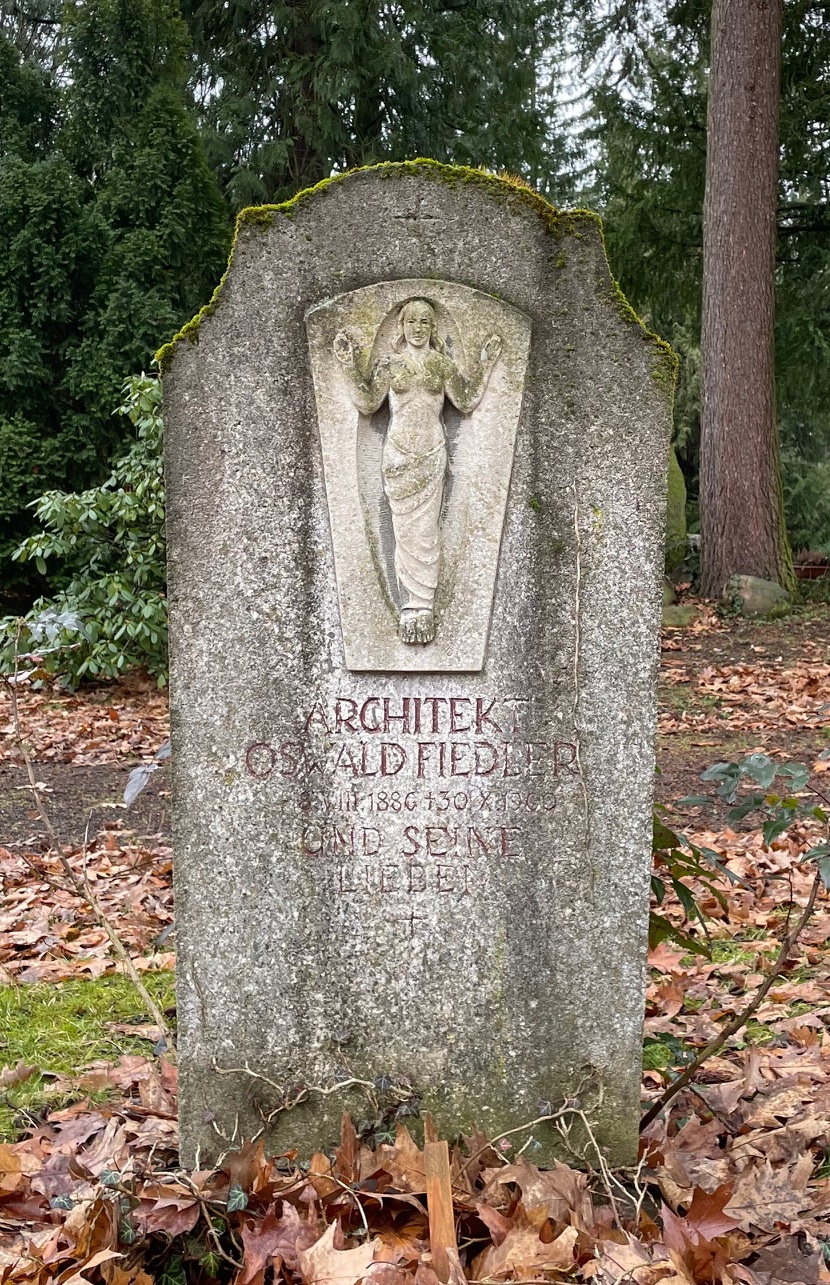 Am 30. Oktober 1960 starb der Architekt Oswald Fiedler; er wurde am 03. November 1960 in diesem Grab beerdigt und ruht seitdem hier mit seinen beiden Frauen für immer vereint.
