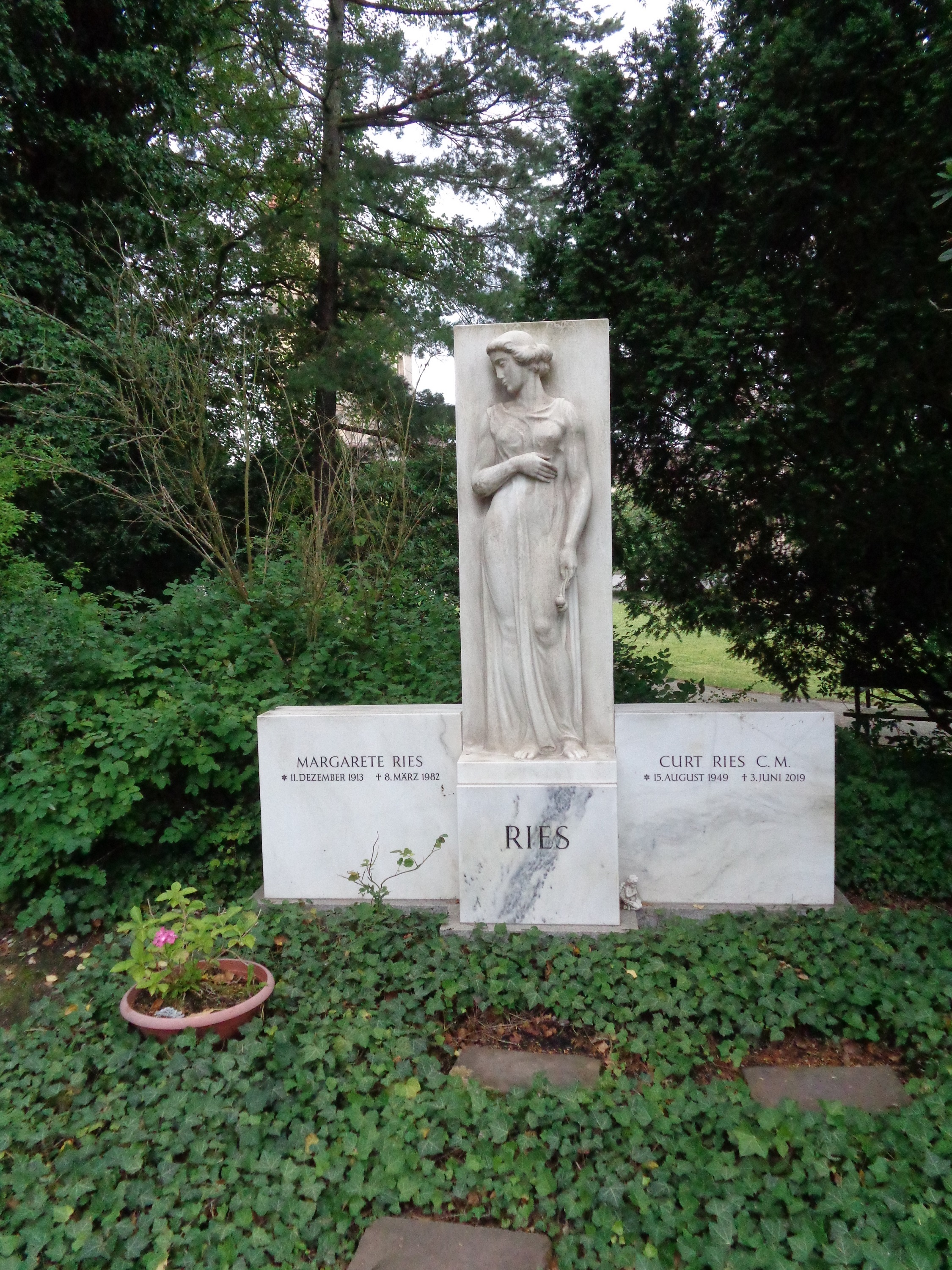 * Das Grabmal wurde im Jahre 2015 in die XIV. Abteilung des Südfriedhofes umgesetzt, der heutige Sockel und die Flankensteine sind nicht original. Vom Grabmal ist lediglich das stelenartige Mittelteil mit der Figur erhalten.