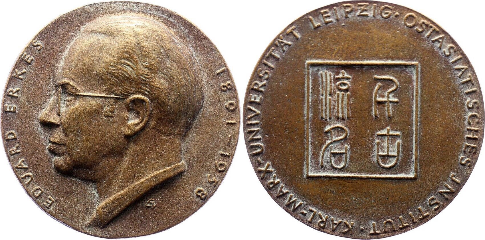 Und so folgte Eduard Erkes bald seinem Vater und studierte in Bonn u. a. Geologie, Geografie und Germanistik, wechselte 1911 an die Universität Leipzig, wo er sich schwerpunktmäßig der Sinologie und der Völkerkunde widmete. 1913 promovierte Eduard Erkes beim namhaften Leipziger Sinologen Professor August Conrady und heiratete im Jahre 1916 schließlich Conradys Tochter Anna-Babette Conrady, eine erfolgreiche Grafikerin. Nach dem Ersten Weltkrieg arbeitete Eduard Erkens in den zwanziger Jahren der Weimarer Republik am Leipziger Museum für Völkerkunde. Erkens, der auch politisch ganz den sozialdemokratischen Positionen des Vaters folgte, verlor letztlich deshalb im Jahre 1933 sein Amt – die nun herrschenden Nationalsozialisten hatten sein wissenschaftliches Ende besiegelt. In den folgenden zehn Jahren wirkte Eduard Erkens als Privatgelehrter und teilte mit vielen Akademikern brotlose Jahre. Die Erforschung der chinesischen Sprache und Kultur aber prägte sein Lebenswerk.
