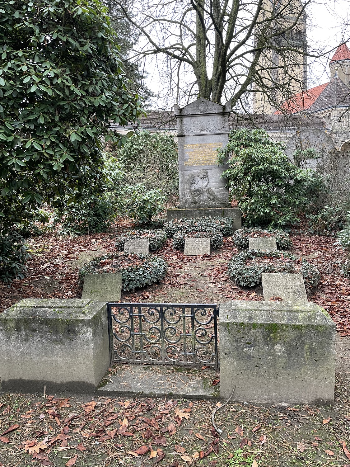 Am 27. April 2025 hatte sich um 12 Uhr die heute weitverzweigte Familie am vorbildlich restaurierten Grabmal versammelt und ehrte mit üppigen Blumenschalen in großer Dankbarkeit ihre zahlreichen hier ruhenden Toten.