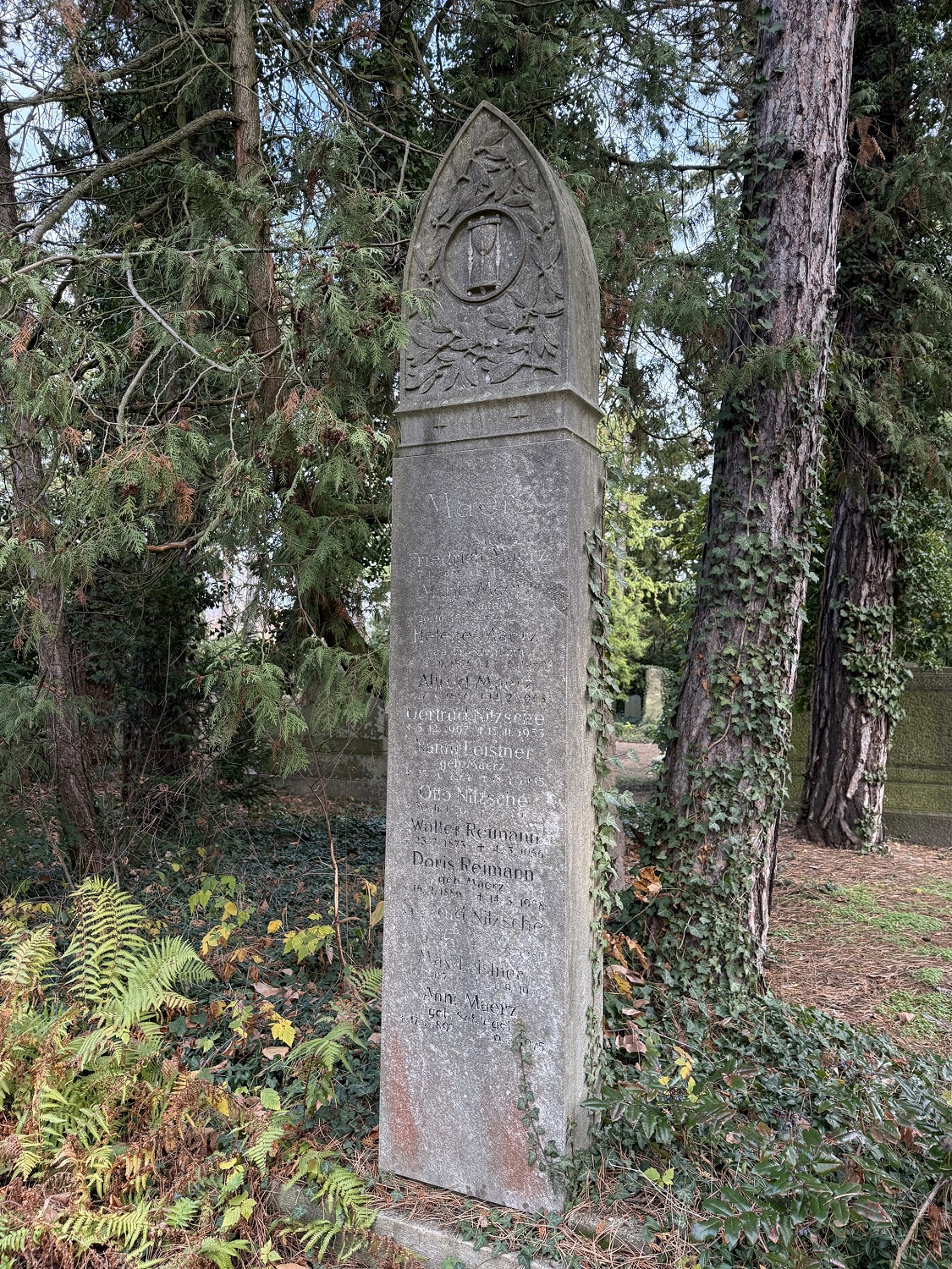Im Jahre 1902 wurde hier der mit 44 Jahren in Frohburg verstorbenen Sohn Victor Mendelssohn, im Jahre 1905 die mit 47 Jahren in Bayreuth verstorbene Tochter Marianne Gramisch geb. Mendelssohn beerdigt. *** Deren Ehemann Carl Gramisch, Hauptmann a.D., starb 1911 im Alter von erst 57 Jahren – die Urne mit seiner Asche befand sich einst auf einem Kragstein linksseitig an der Wandstelle, darunter sehen wir noch eine Granitplatte mit seinem Namen und Lebensdaten.