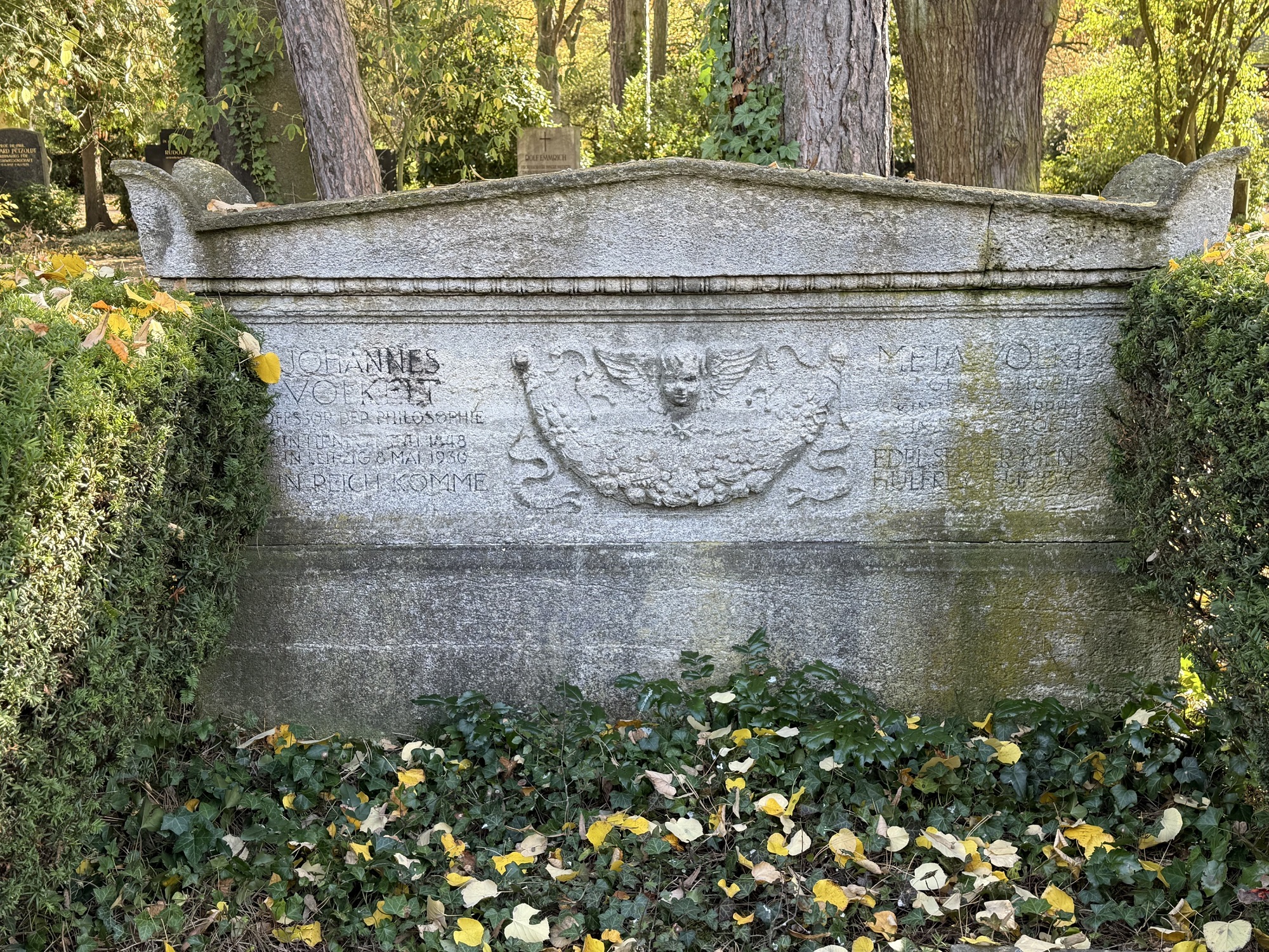 Im östlichen Areal der zweiten Abteilung des Leipziger Südfriedhofes finden wir im SEPULCRUM UNIVERSITATIS LIPSIENSIS die Grabstätte des hochbedeutenden Philosophen Professor Johannes Volkelt.